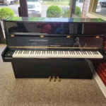 A beautiful High Gloss ebony 43″ Kohler & Campbell console. It plays well with a beautiful tone, and holds tuning very well; a great piano for a beginner, but also for someone who plays.
